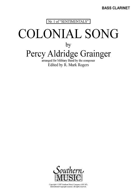 "Colonial Song - Bb Bass Clarinet" Sheet Music by Percy Grainger