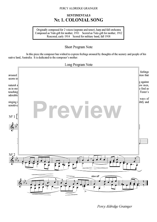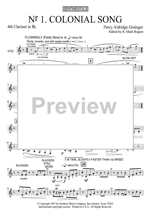 "Colonial Song - Bb Clarinet 4" Sheet Music by Percy Grainger