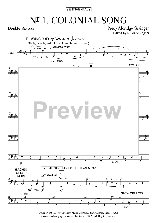 Digital Sheet Music for Colonial Song - Contrabassoon by Percy Grainger, R. Mark Rogers scored for Concert Band; id:503560