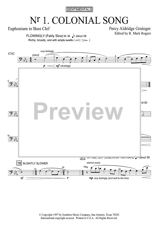 Digital Sheet Music for Colonial Song - Euphonium BC by Percy Grainger, R. Mark Rogers scored for Concert Band; id:503578