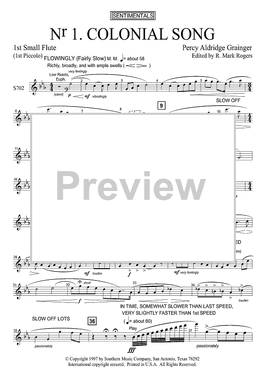 "Colonial Song - Piccolo 1" Sheet Music by Percy Grainger