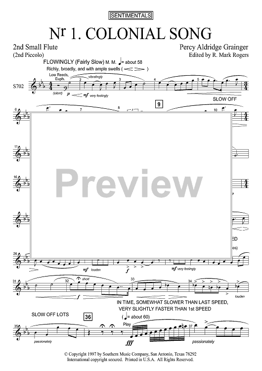 Digital Sheet Music for Colonial Song - Piccolo 2 by Percy Grainger, R. Mark Rogers scored for Concert Band; id:503544