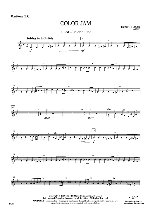 "Color Jam - Baritone TC" Sheet Music by Timothy Loest