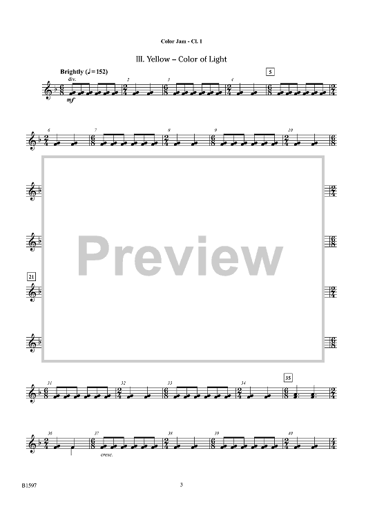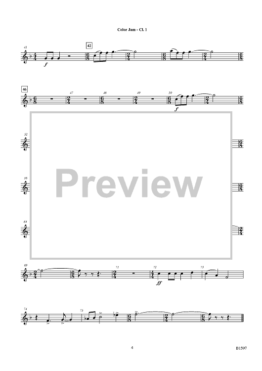 Digital Sheet Music for Color Jam - Bb Clarinet 1 by Timothy Loest scored for Concert Band; id:447490