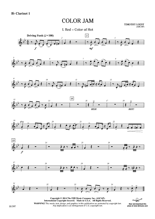 "Color Jam - Bb Clarinet 1" Sheet Music by Timothy Loest