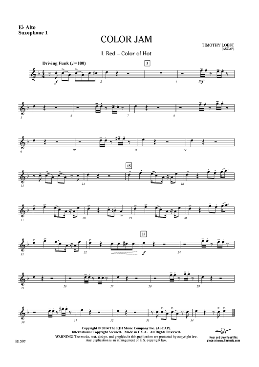 "Color Jam - Eb Alto Sax 1" Sheet Music by Timothy Loest
