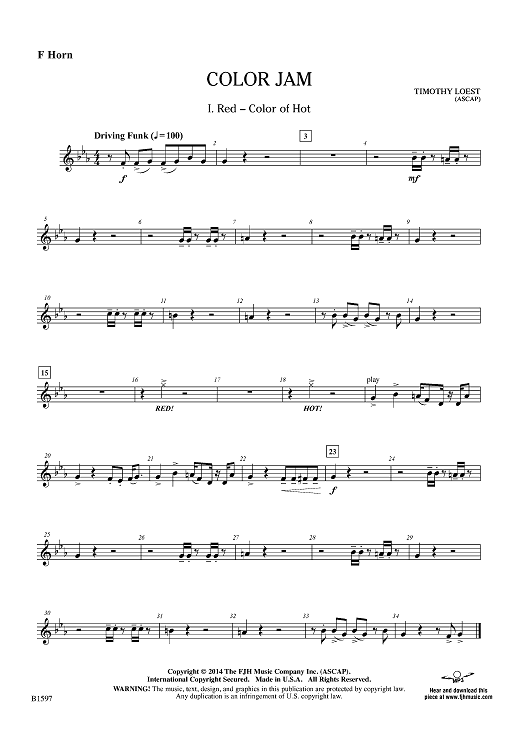 "Color Jam - F Horn" Sheet Music by Timothy Loest