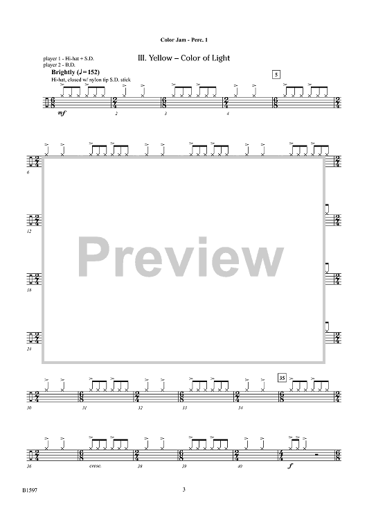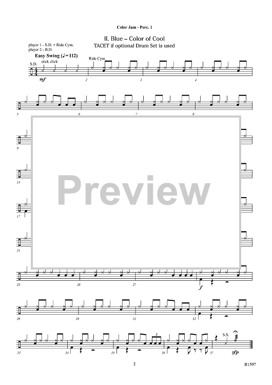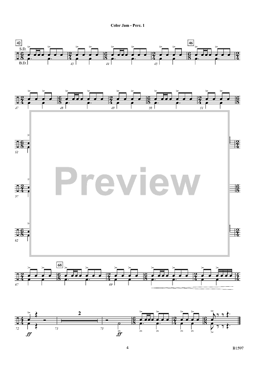 Digital Sheet Music for Color Jam - Percussion 1 by Timothy Loest scored for Concert Band; id:447509