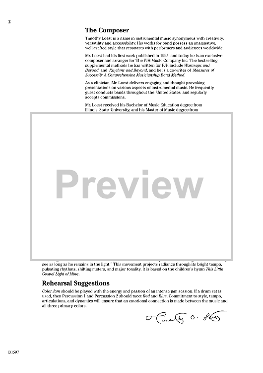 Digital Sheet Music for Color Jam - Score Cover by Timothy Loest scored for Concert Band; id:447486