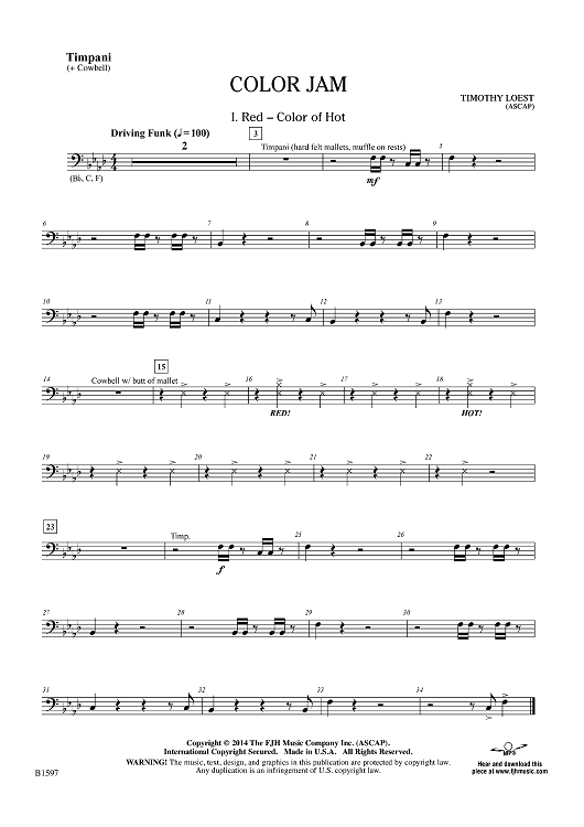 Digital Sheet Music for Color Jam - Timpani (+ Cowbell) by Timothy Loest scored for Concert Band; id:447505