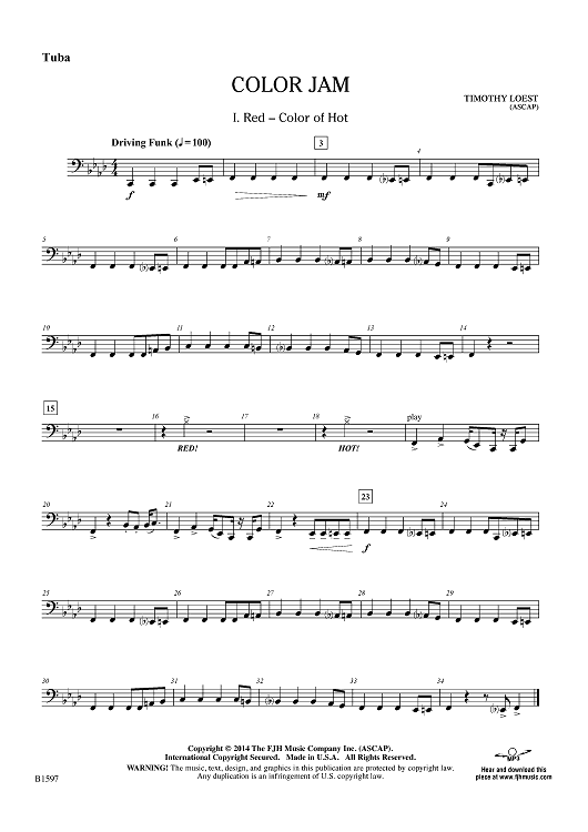 Digital Sheet Music for Color Jam - Tuba by Timothy Loest scored for Concert Band; id:447504