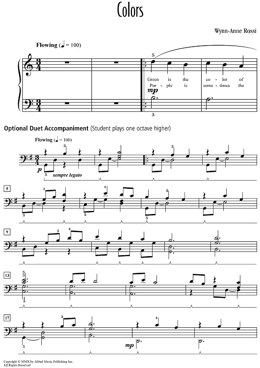 "Colors" Sheet Music by Wynn-Anne Rossi