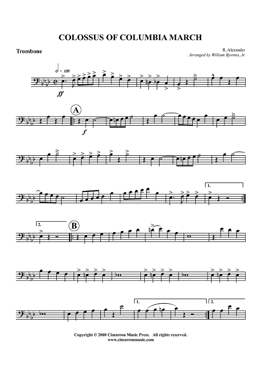 "Colossus of Columbia - Trombone" Sheet Music by R. Alexander
