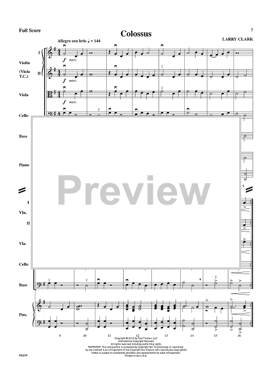 Digital Sheet Music for Colossus - Score by Larry Clark scored for String Orchestra; id:435083