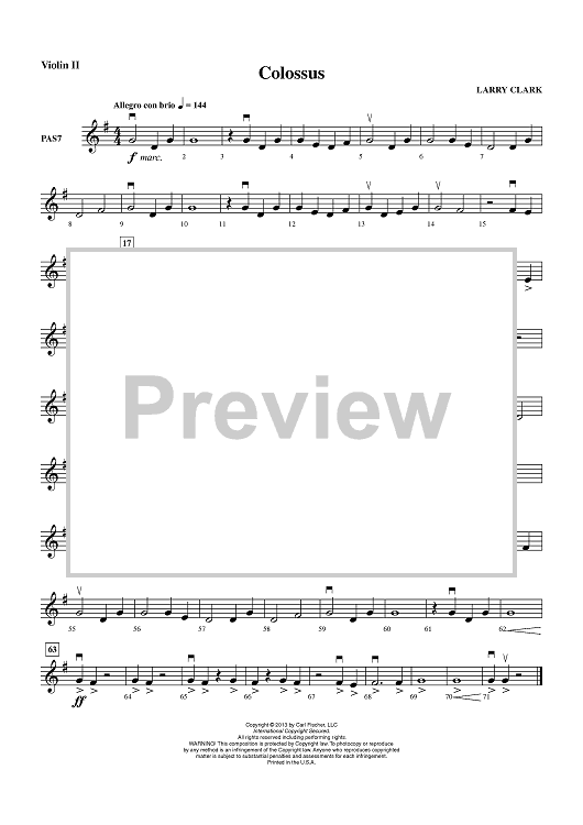 "Colossus - Violin 2" Sheet Music by Larry Clark