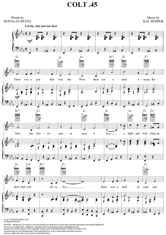 Digital Sheet Music for Colt .45 by Hal Hopper, Douglas Heyes scored for Piano/Vocal/Chords; id:266510