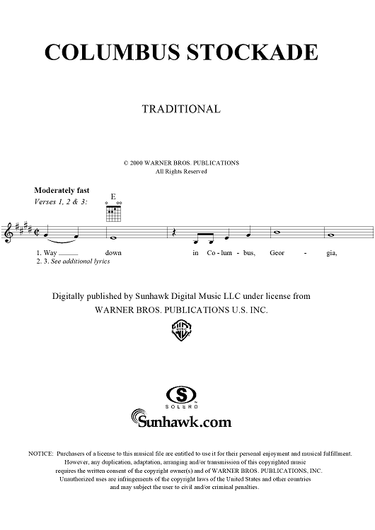 Digital Sheet Music for Columbus Stockade by Traditional scored for Lead Sheet; id:292611