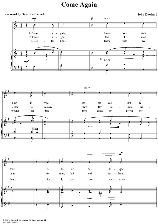 Digital Sheet Music for Come Again by John Dowland, Granville Bantock scored for Voice/Piano; id:270677