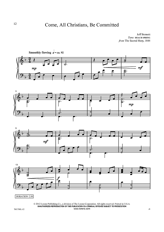 Digital Sheet Music for Come, All Christians, Be Committed by Jeff Bennett, The Sacred Harp scored for Piano Solo; id:433776