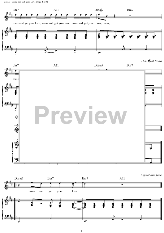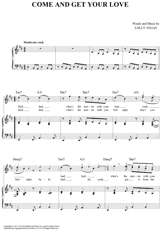 Digital Sheet Music for Come and Get Your Love by Lolly Vegas, Redbone scored for Piano/Vocal/Chords; id:365415