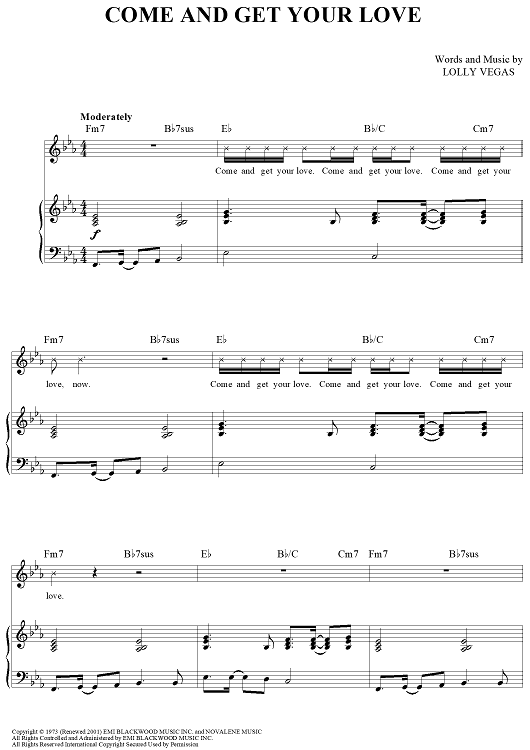 Digital Sheet Music for Come and Get Your Love by Lolly Vegas, Redbone scored for Piano/Vocal/Chords; id:449261