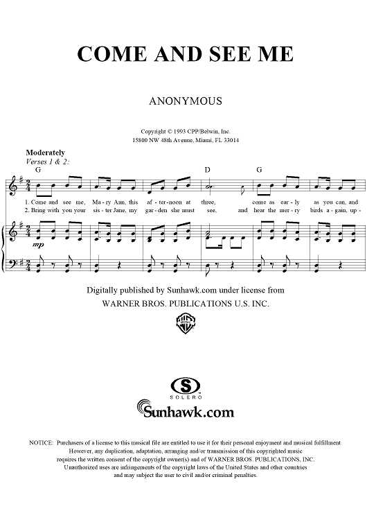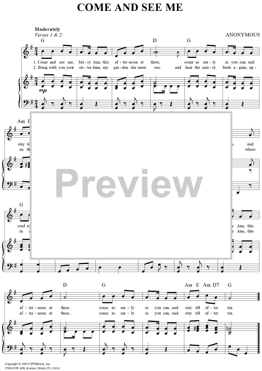 Digital Sheet Music for Come and See Me by Unknown Writer scored for Piano/Vocal/Chords; id:277611