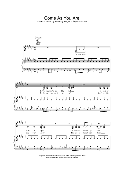 Digital Sheet Music for Come As You Are by Guy Chambers, Beverley Knight scored for Piano/Vocal/Chords; id:382948