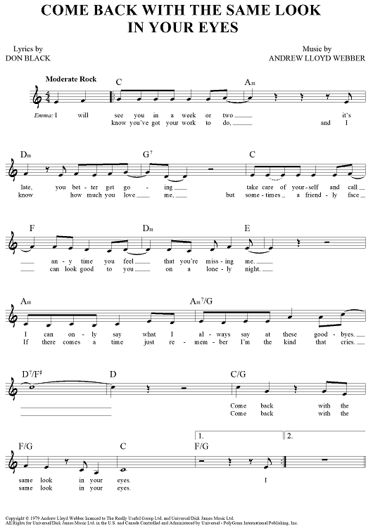 Digital Sheet Music for Come Back With the Same Look in Your Eyes by Don Black, Andrew Lloyd Webber scored for Lead Sheet; id:457130