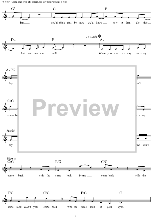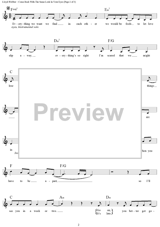 "Come Back With the Same Look in Your Eyes" Sheet Music by Andrew Lloyd Webber
