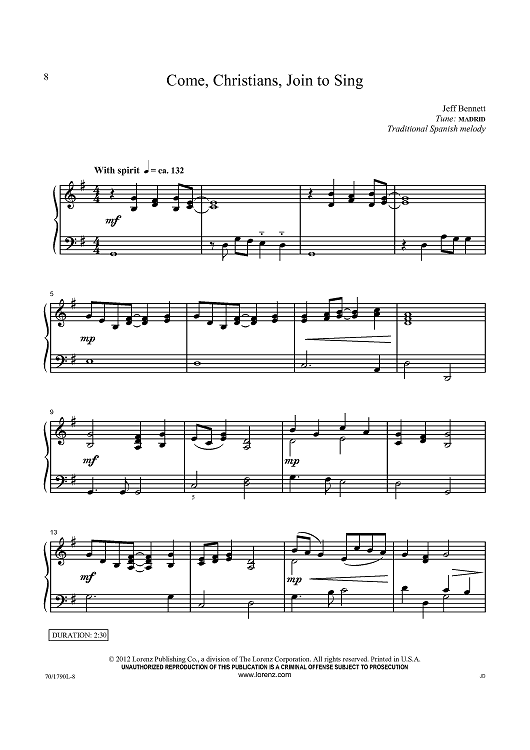 Digital Sheet Music for Come, Christians Join to Sing by Traditional Spanish, Jeff Bennett scored for Piano Solo; id:433775