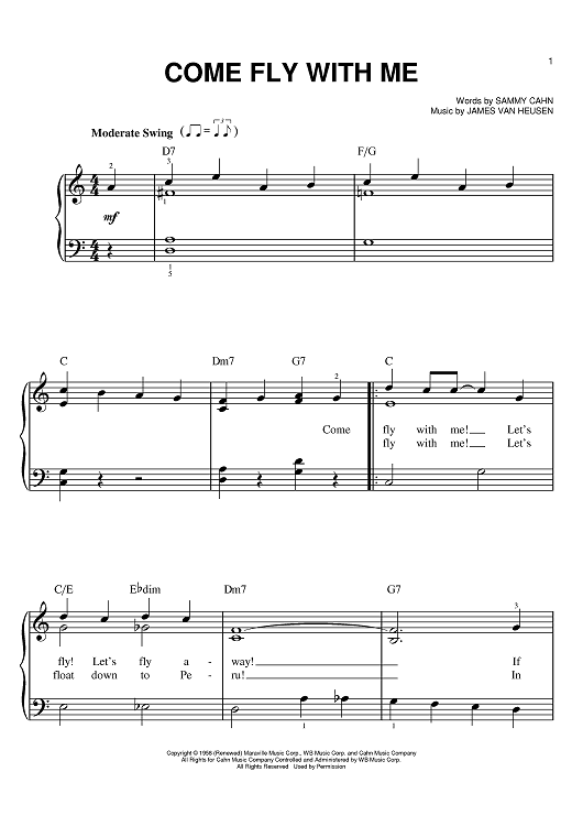 "Come Fly With Me" Sheet Music by Frank Sinatra