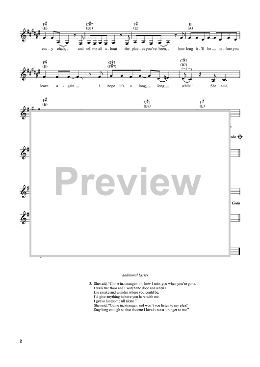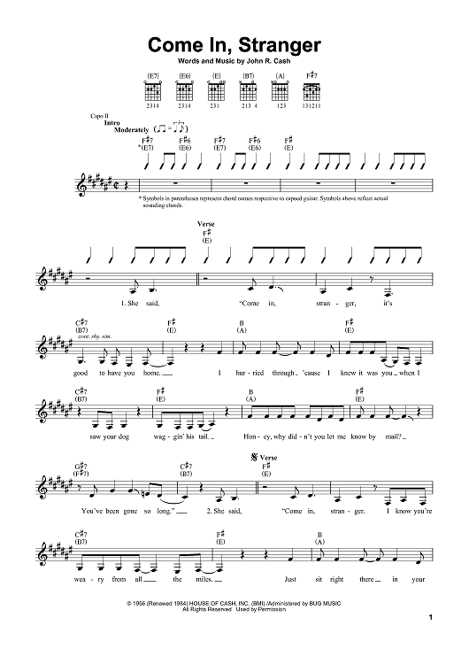"Come In, Stranger" Sheet Music by Johnny Cash