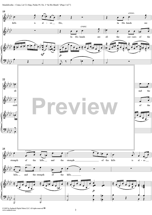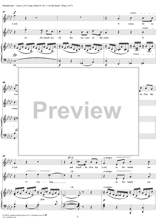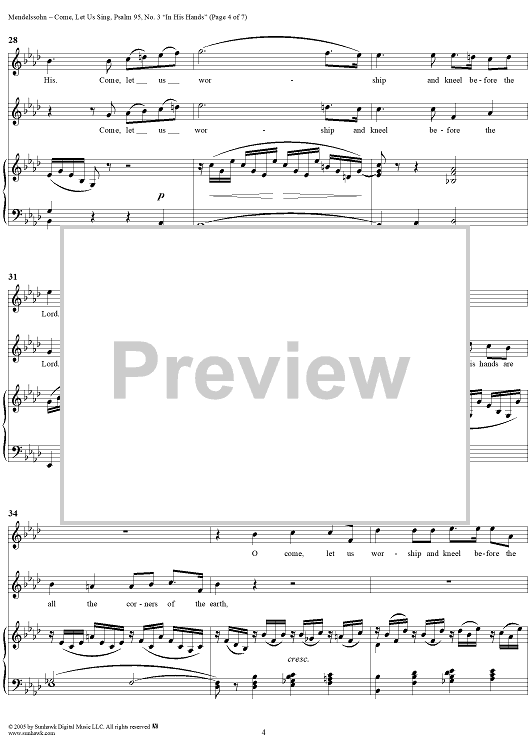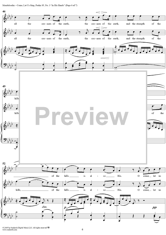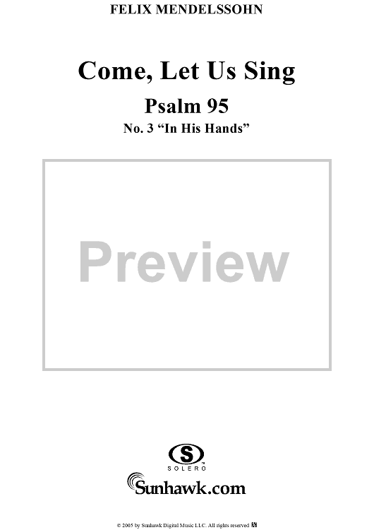 Digital Sheet Music for Come, Let Us Sing (Psalm 95), Op. 46: No. 3, In His Hands by Felix Mendelssohn scored for Four-part Mixed Chorus/Piano; id:306437