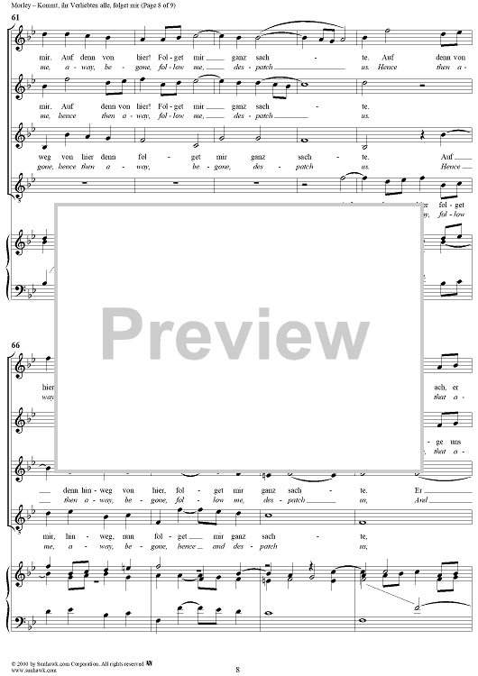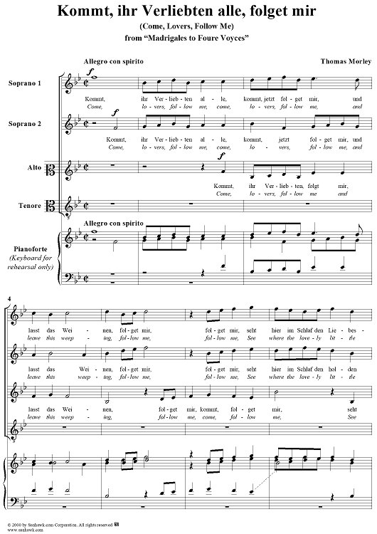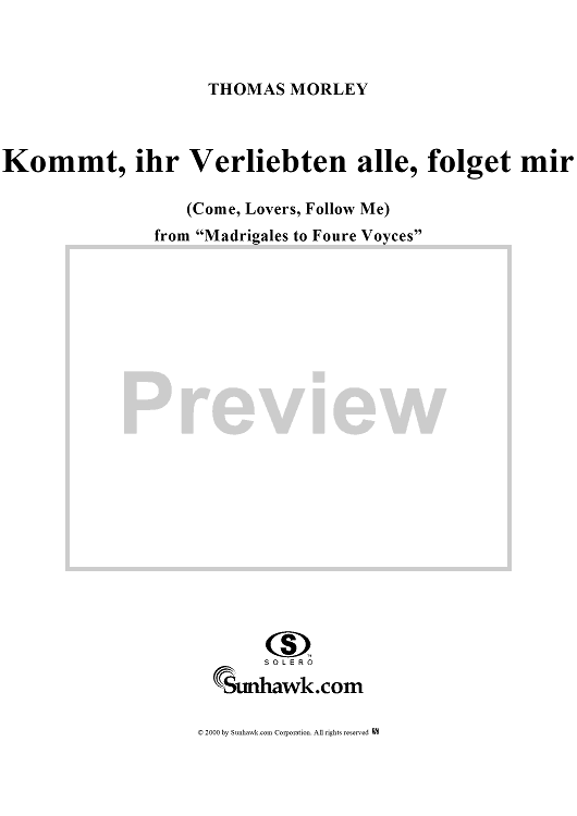 Digital Sheet Music for Come, Lovers, Follow Me by Thomas Morley scored for Four-part Mixed Chorus; id:252309