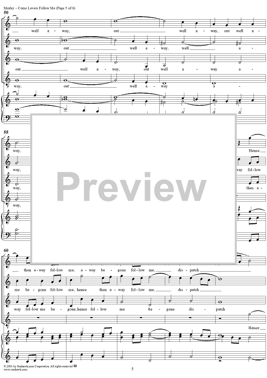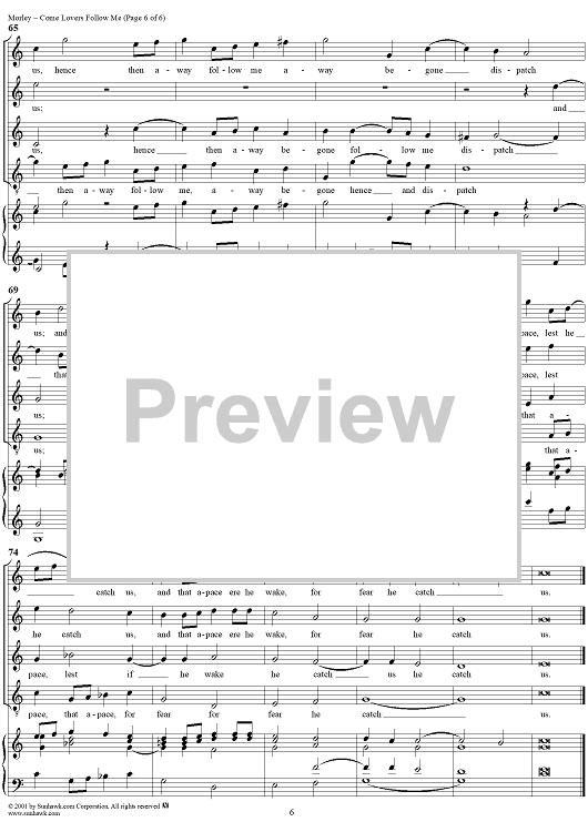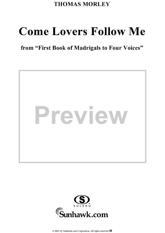 Digital Sheet Music for Come Lovers Follow Me by Thomas Morley scored for Four-part Mixed Chorus; id:259790
