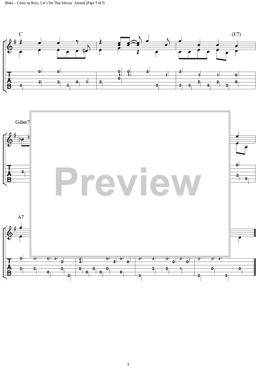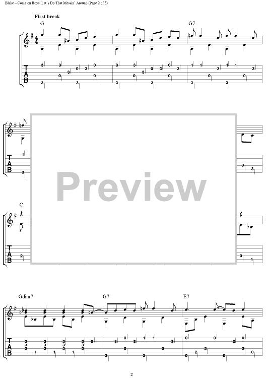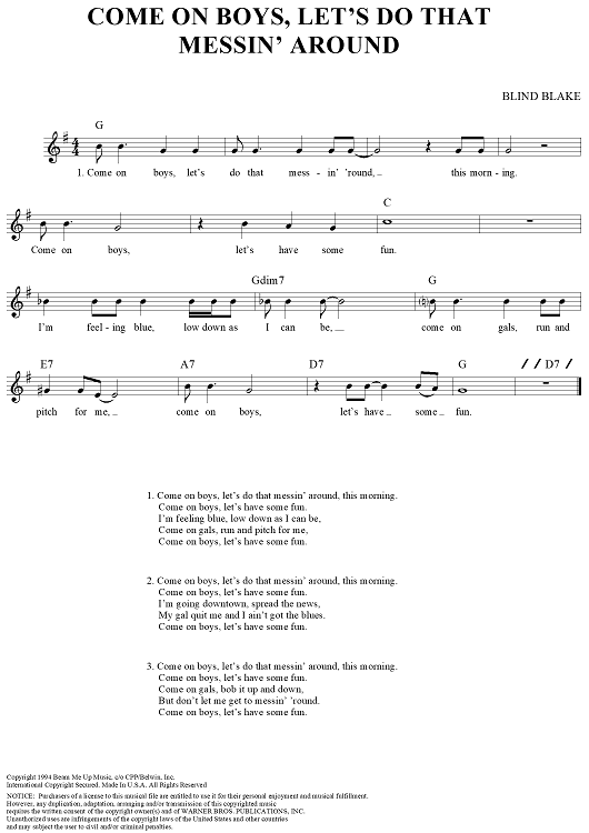 "Come on Boys, Let's Do That Messin' Around" Sheet Music by Blind Blake