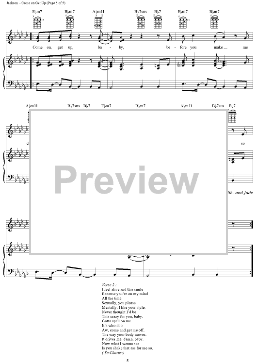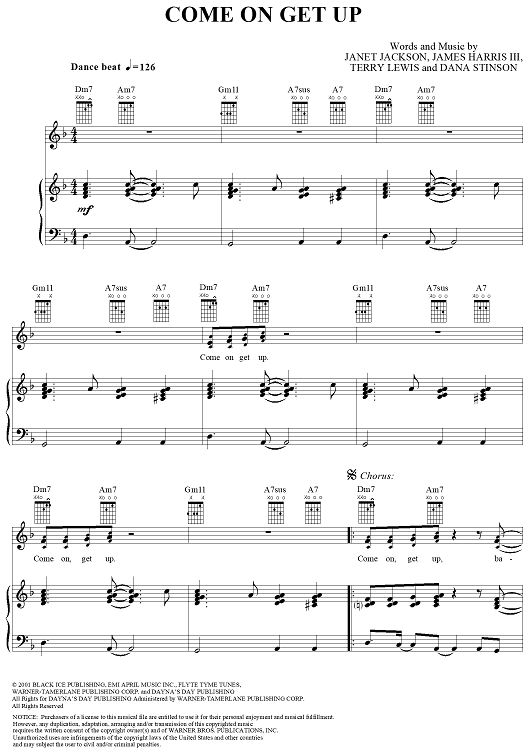 Digital Sheet Music for Come on Get Up by Janet Jackson, Jimmy Jam, Terry Lewis, Dana Stinson scored for Piano/Vocal/Chords; id:285714