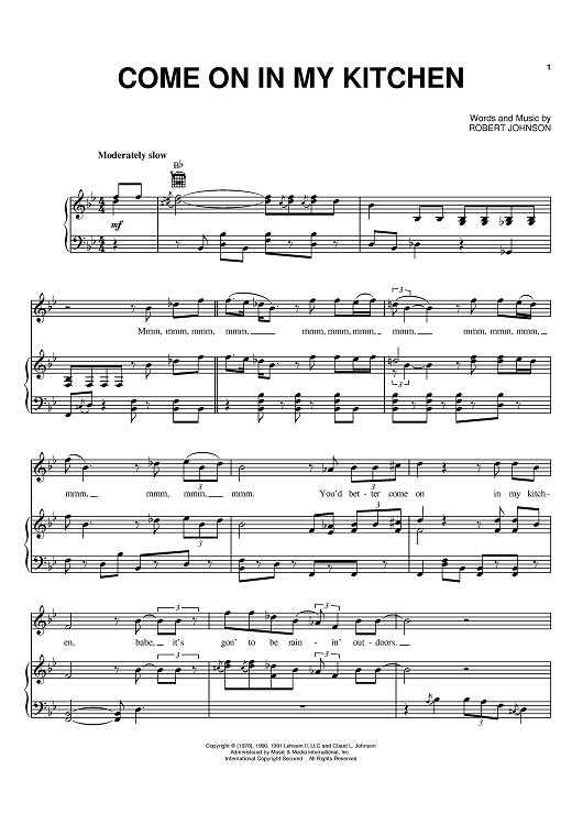 Digital Sheet Music for Come On In My Kitchen by Robert Johnson scored for Piano/Vocal/Chords; id:372268