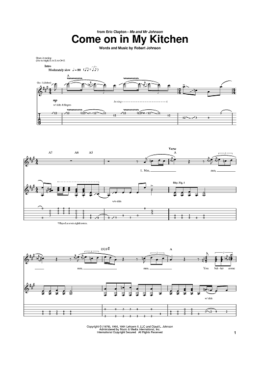 "Come On In My Kitchen" Sheet Music by Eric Clapton