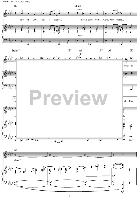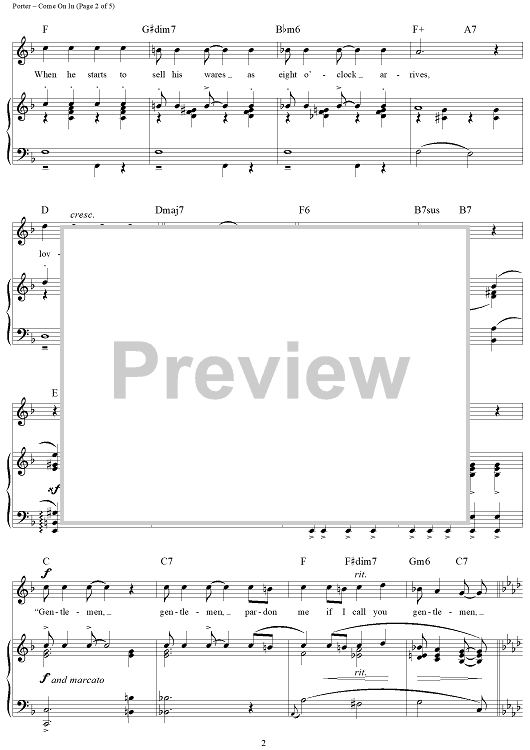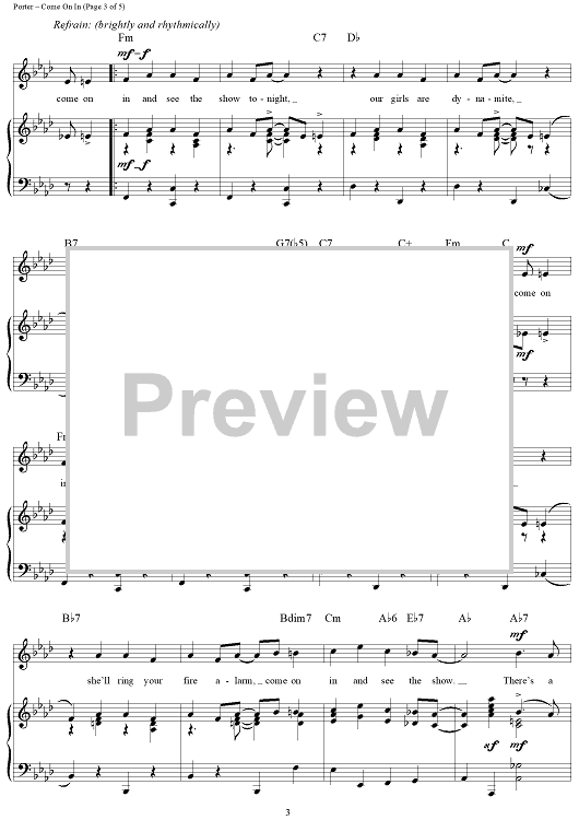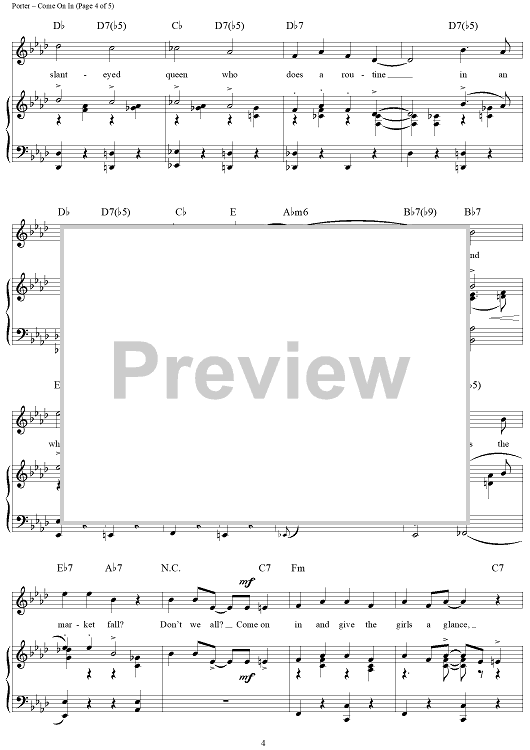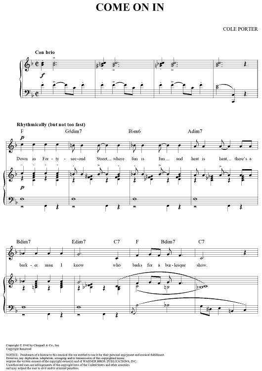 Digital Sheet Music for Come On In by Cole Porter scored for Piano/Vocal/Chords; id:320755