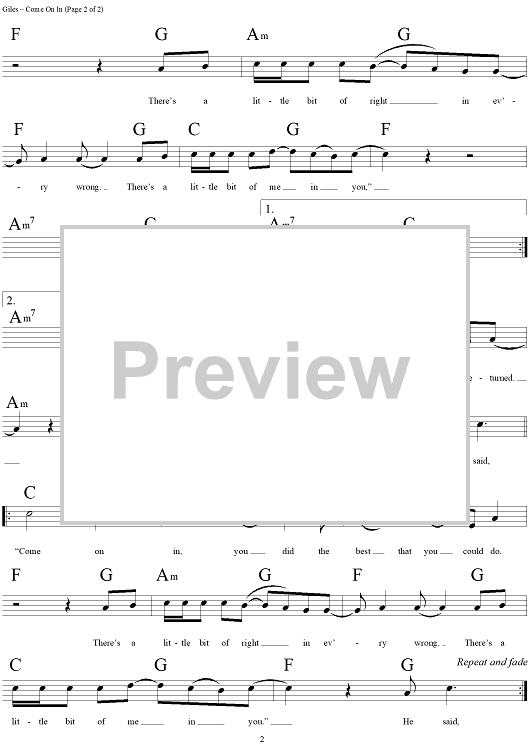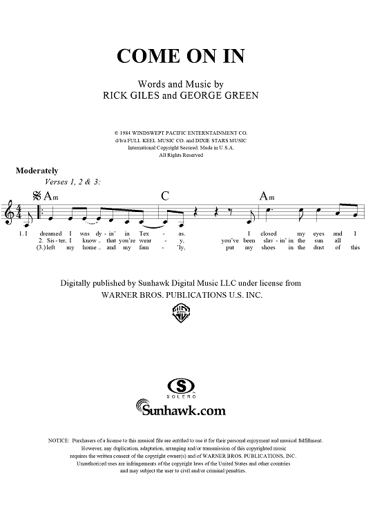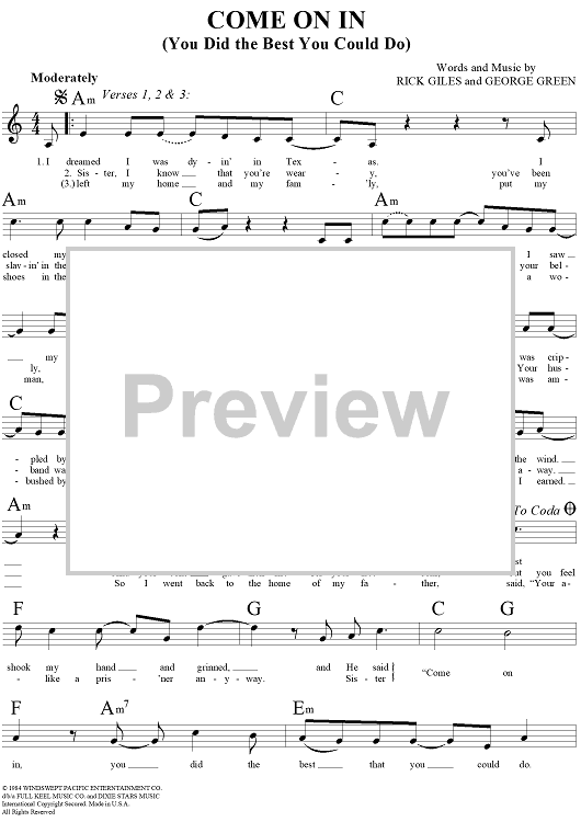 Digital Sheet Music for Come On In (You Did the Best You Could) by Rick Giles, George Green, The Oak Ridge Boys scored for Lead Sheet; id:268212