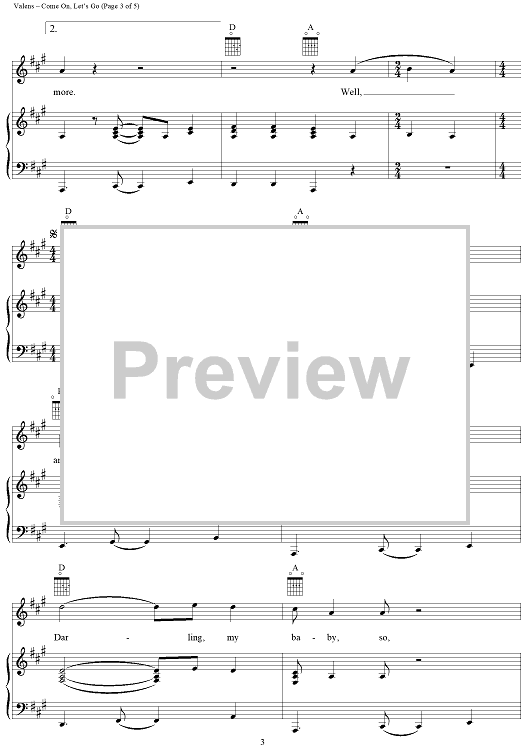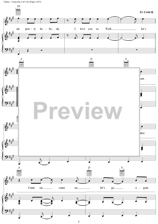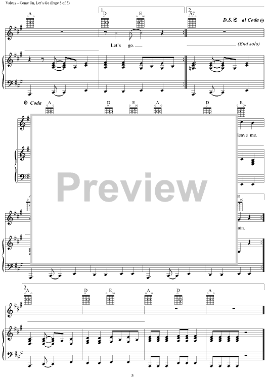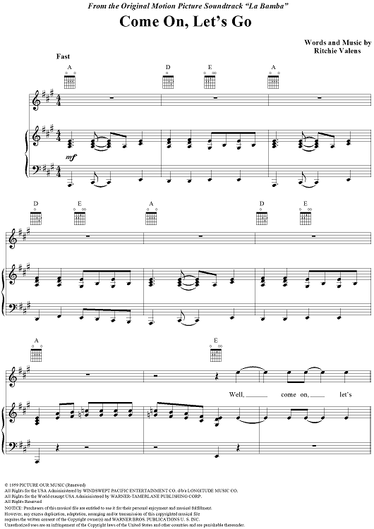 Digital Sheet Music for Come On, Let's Go by Ritchie Valens, The McCoys scored for Piano/Vocal/Chords; id:111056