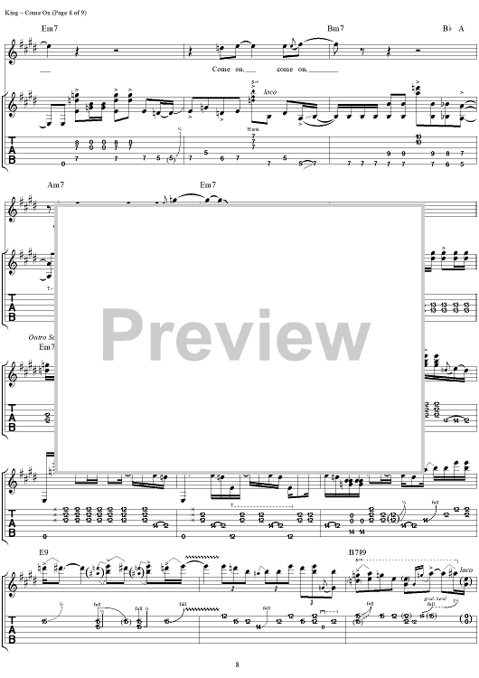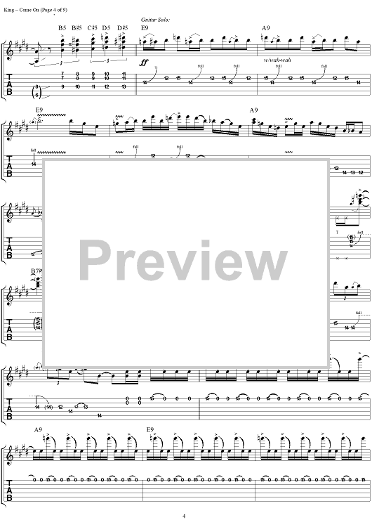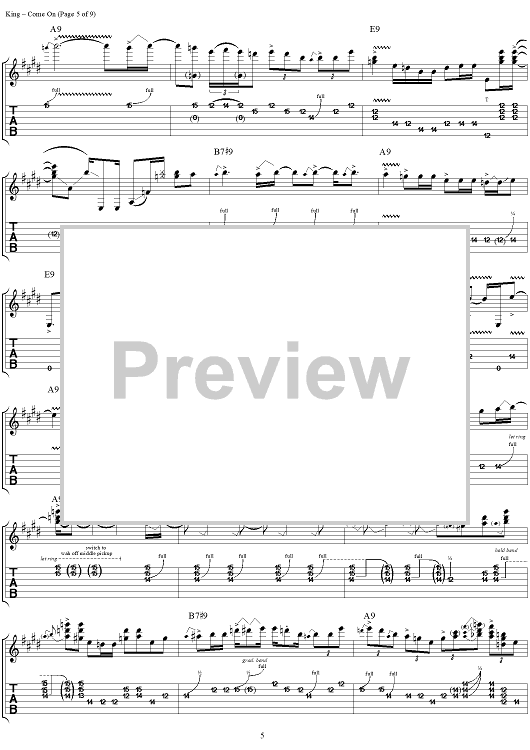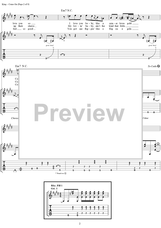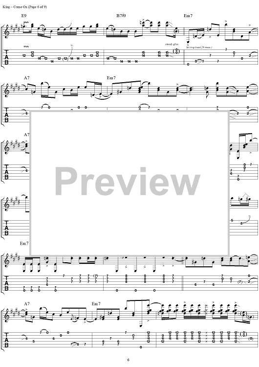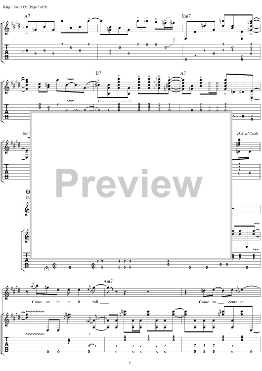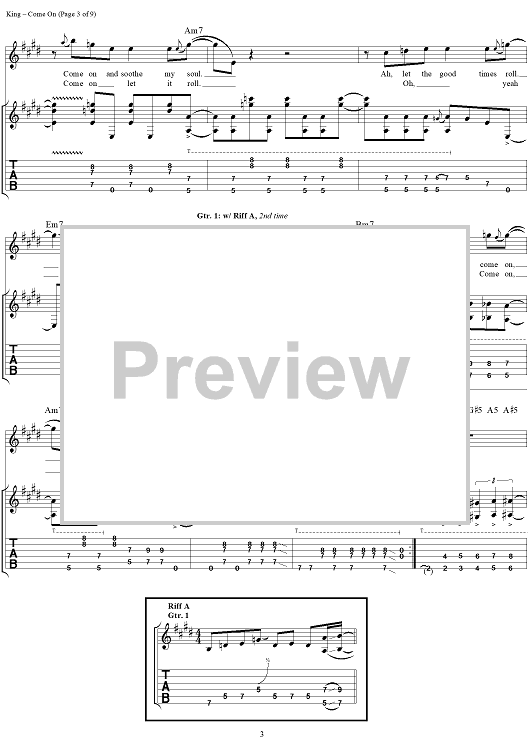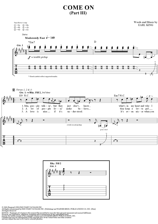 Digital Sheet Music for Come On (Part III) by Stevie Ray Vaughan, Earl King scored for Guitar Tab/Vocal; id:250064