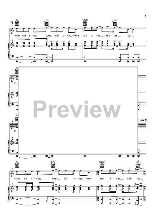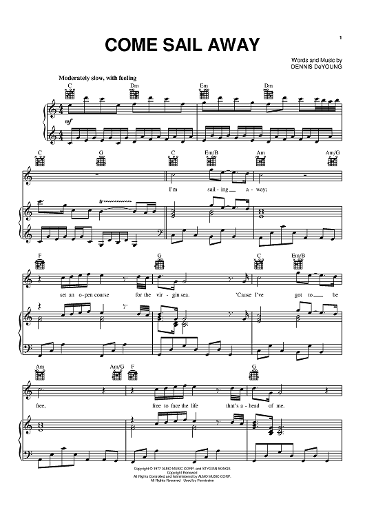 Digital Sheet Music for Come Sail Away by Styx, Dennis DeYoung scored for Piano/Vocal/Chords; id:367784