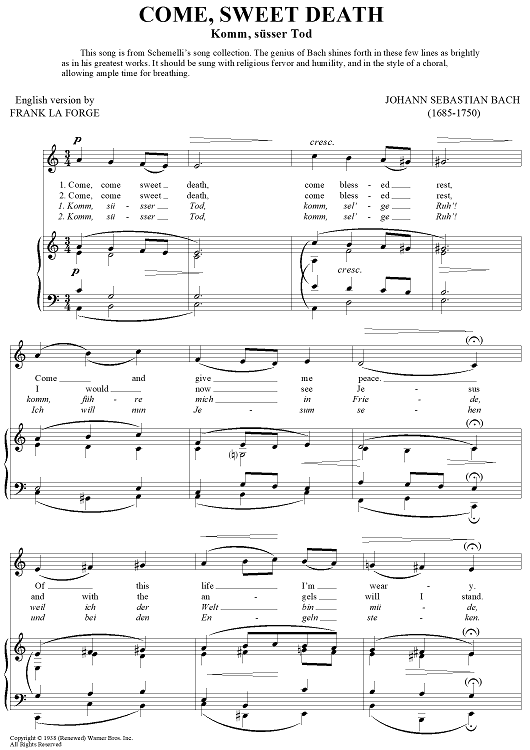 "Come, Sweet Death (Komm, süsser Tod)" Sheet Music by Johann Sebastian Bach