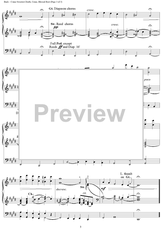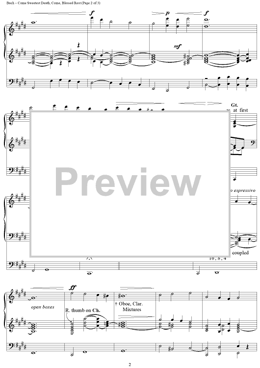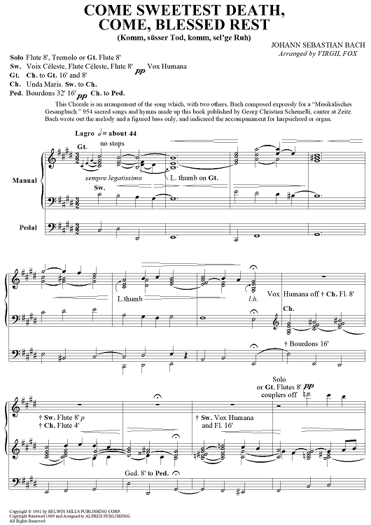 Digital Sheet Music for Come, Sweetest Death, Come, Blessed Rest by Virgil Fox, Johann Sebastian Bach scored for Organ Solo; id:276573