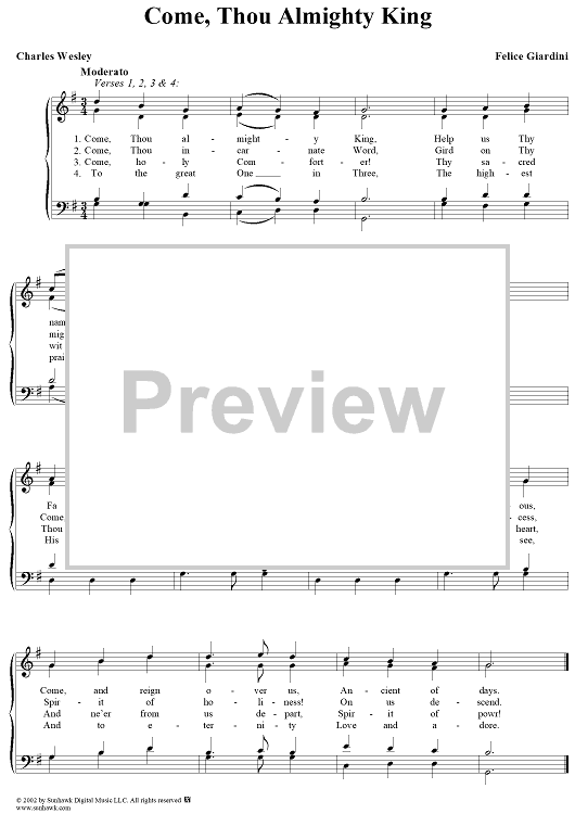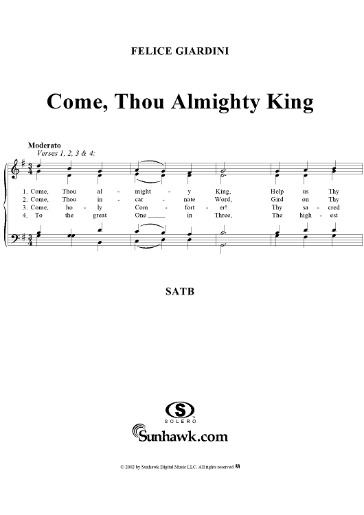 Digital Sheet Music for Come, Thou Almighty King by Felice de Giardini scored for Four-part Mixed Chorus; id:267164