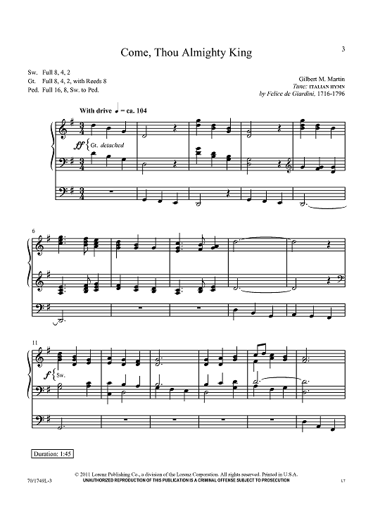 Digital Sheet Music for Come, Thou Almighty King by Felice de Giardini, Gilbert M. Martin scored for Organ Solo; id:434675