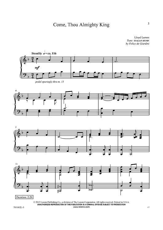 Digital Sheet Music for Come, Thou Almighty King by Felice de Giardini, Lloyd Larson scored for Piano Solo; id:434923
