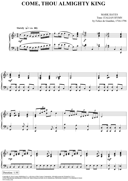 Digital Sheet Music for Come, Thou Almighty King by , Mark Hayes, Felice de Giardini scored for Piano Solo; id:459513